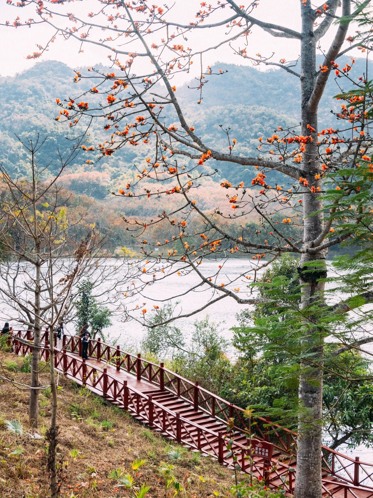 红棉成片,云雾缭绕山脚,很是惊艳
