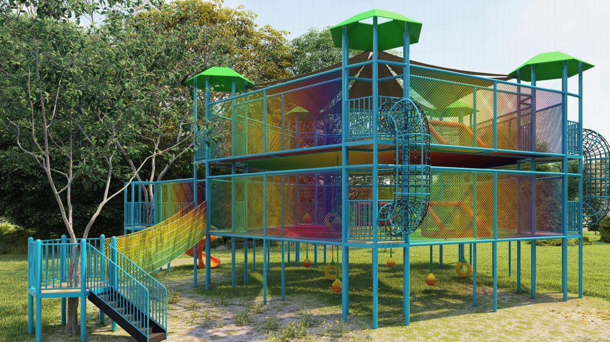 这里有色彩鲜艳的攀爬架,造型可爱的滑梯
