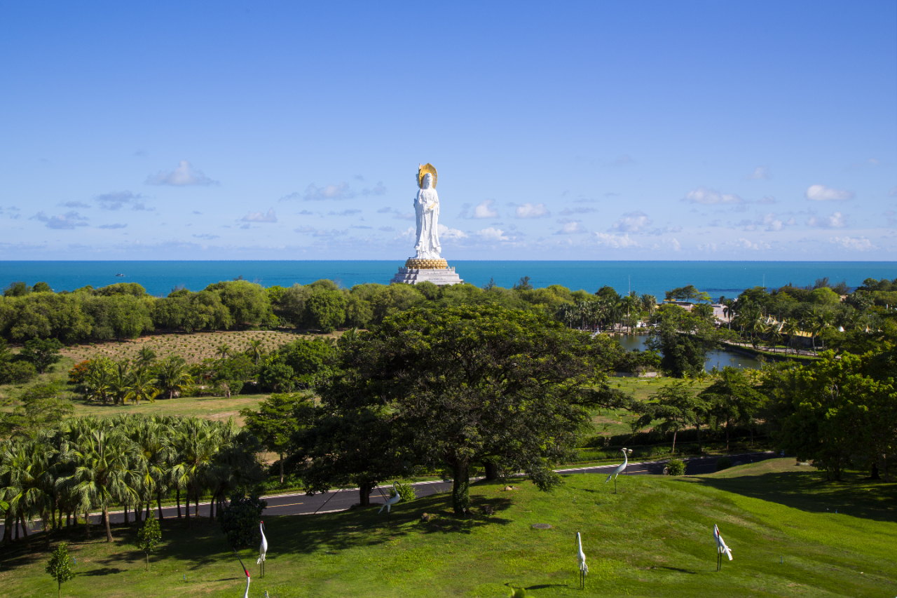 直面妙相庄严的108米海上观音圣像